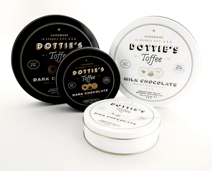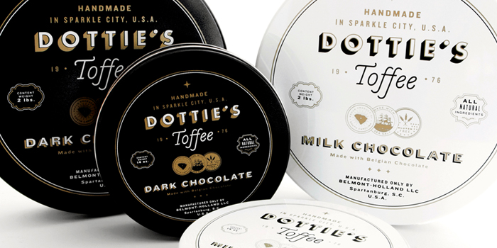 “多蒂的太妃糖是一個(gè)慶祝一切熟悉的甜蜜。點(diǎn)開始制作自己的太妃糖1976和她愛她的手藝是會(huì)傳染的。她的孫子尼克進(jìn)行太妃糖制作傳統(tǒng)的這些天,他賣到全國(guó)范圍內(nèi)的零售商。我們創(chuàng)造了一個(gè)品牌是甜的,復(fù)雜多變的太妃糖本身既懷舊與當(dāng)代。明亮,過(guò)渡色對(duì)比的黑色,白色和灰色以及大膽,簡(jiǎn)單的文字定義的品牌在包裝,抵押和網(wǎng)站。